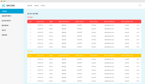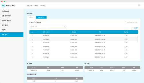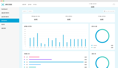 데이터 관리 URCODE 어플리케이션과 함께 제공되는 대시보드에서 통계 데이터, 유통 과정, 고객 정보 등을 손쉽게 관리 데이터 관리 URCODE 어플리케이션과 함께 제공되는 대시보드에서 통계 데이터, 유통 과정, 고객 정보 등을 손쉽게 관리 대시보드 대시보드 통계 데이터 관리 통계 데이터 관리 유통 관리 유통 관리 CONTACT US Name Email Subject Company Message CONTACT US Name Email Subject Company Message
